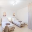 The penthouse features a spacious and airy living room with a fully equipped kitchen and a sofa bed for 1 adult. It opens up to a terrace with outdoor furniture, offering beautiful sea views and a BBQ for enjoyable al fresco dining. The bedroom is furnished with 2 single beds, making it suitable for up to 4 adults.