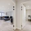 As you step into the apartment, you're greeted by a bright entrance hall leading to the open-plan living and kitchen area. The space boasts wooden floors, abundant natural light, and chic furnishings, professionally designed for your utmost comfort.