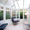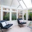 Relax in the inviting living area furnished with a cozy sofa and a flat-screen TV, equipped with complimentary Wi-Fi throughout the apartment. Adjacent to the living space is a charming conservatory, offering a tranquil spot to unwind.