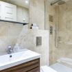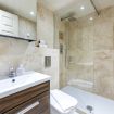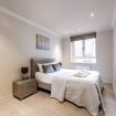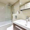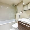 There are three separate bedrooms (two with a king size bed and one with a single size bed), with nightstands, bedside lamps and plenty of storage space. The apartment features 2 bathrooms; one of the 2 bathrooms are en-suited to one of the double bedrooms (one full with a combination bathtub/shower, one half with shower).